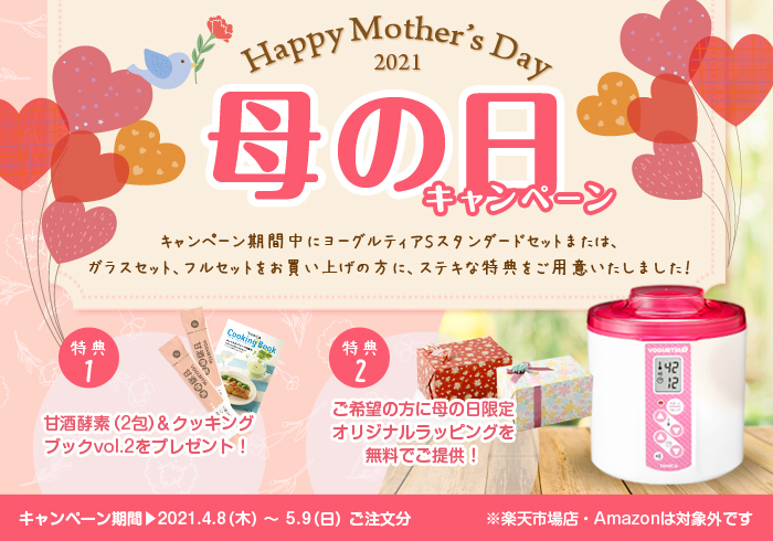 2021年4月8日(木)~5月9日(日)までの期間、母の日キャンペーンを開催します。 期間中にヨーグルティアSス…