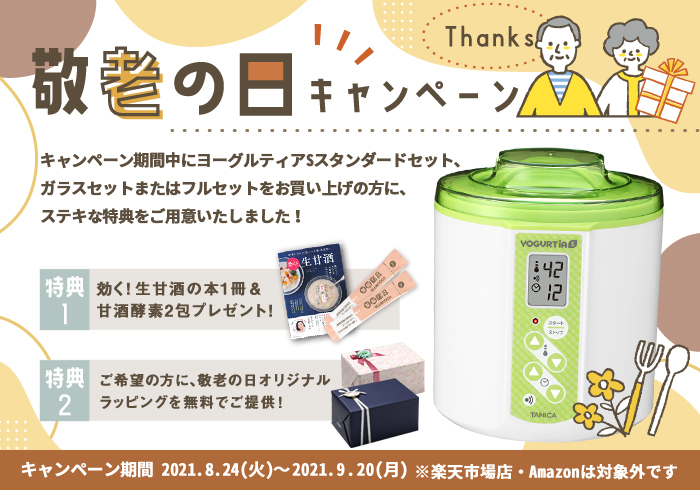 2021年8月24日(火)~9月20日(月)までの期間、敬老の日キャンペーンを開催します。キャンペーン期間中にヨーグ…