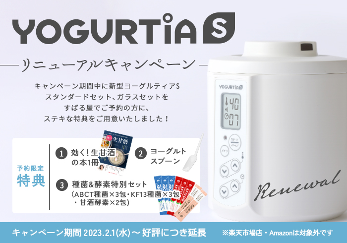 2023.02.01 キャンペーン ヨーグルティアSリニューアルキャンペーン開催! 新型ヨーグルティアSの販売に伴い、2023年2月1日(水)から、ヨーグルティアSリニューアルキャンペーンを開催します。…