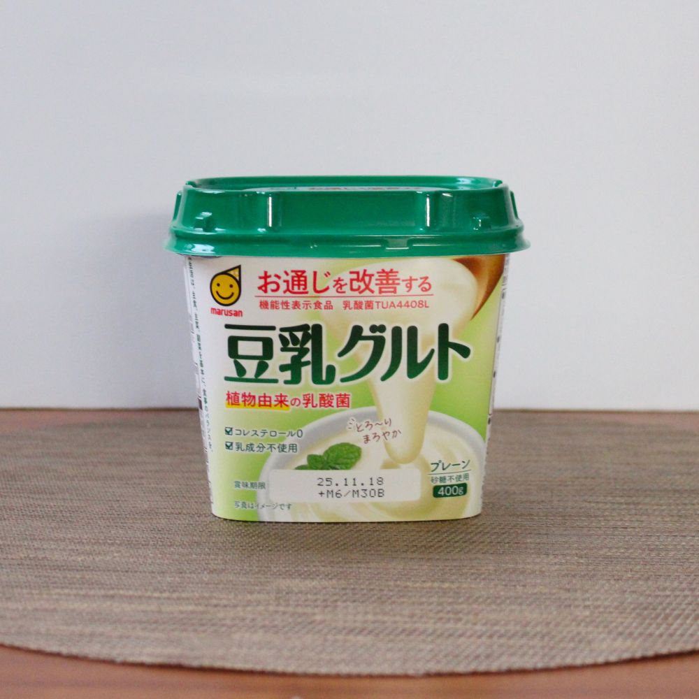 マルサン 豆乳グルト:しっかり固まっていて、酸味はない。豆乳の味と甘さを感じるヨーグルト。