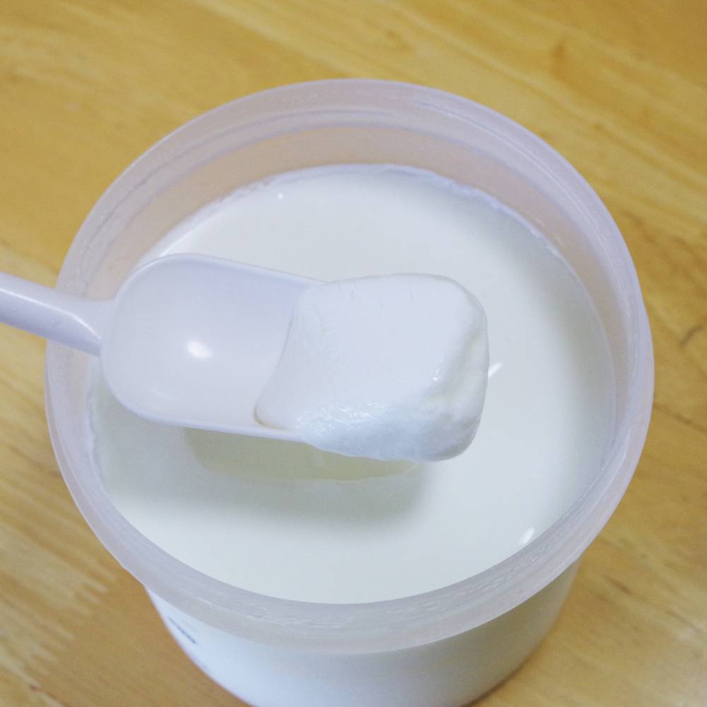 レンジで消毒した内容器にヨーグルトと牛乳を入れ良くかき混ぜます。