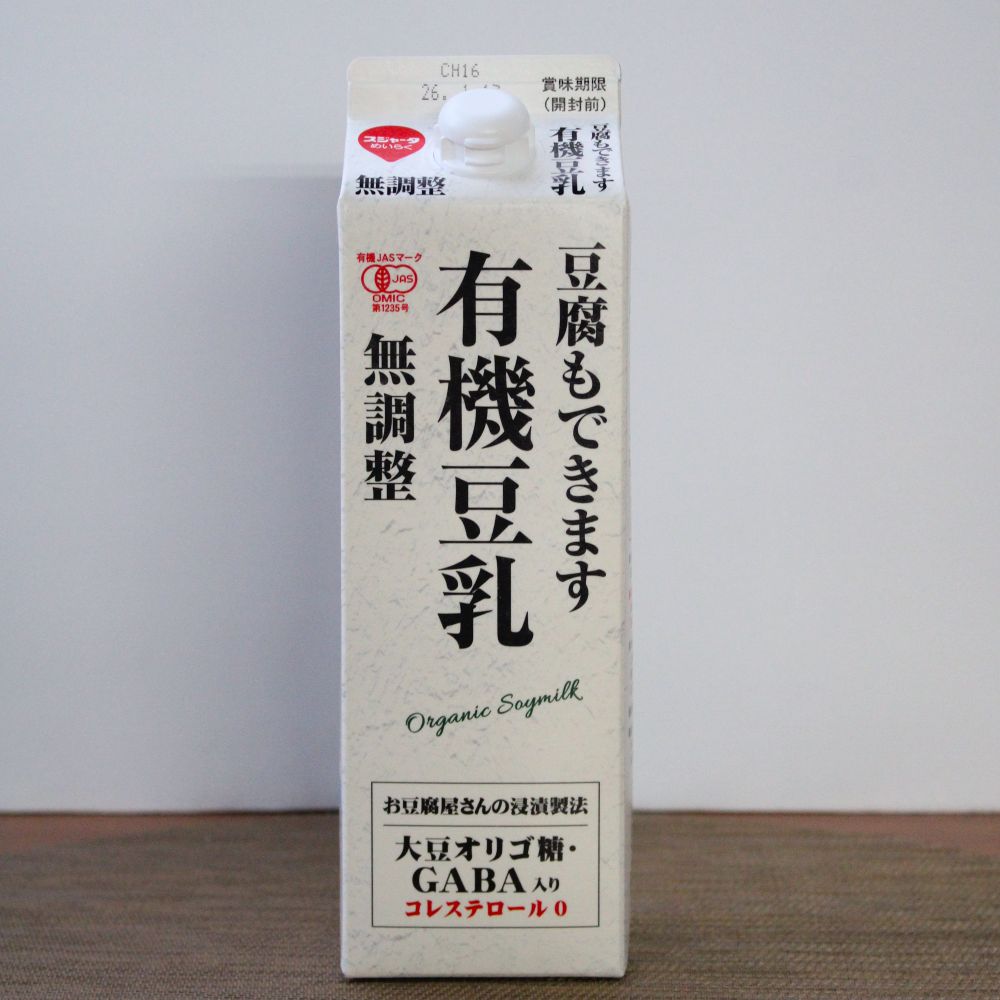 有機丸大豆100%使用。濃厚な豆乳ですので、にがりを加えると豆腐もできます。伝統的な浸漬製法。丸大豆をじっくりと水に浸けて吸収させて搾る、昔ながらのお豆腐屋さんと同じ製法です。この製法により大豆オリゴ糖やGABAを含みます。※スジャータHPより
